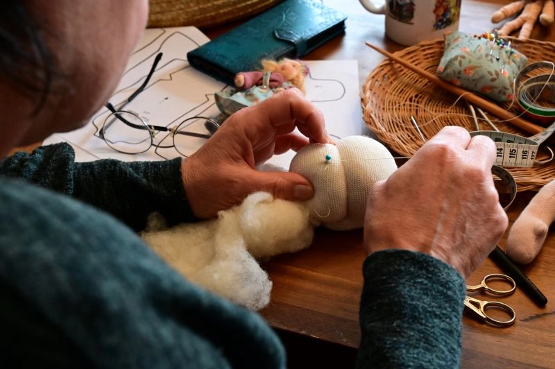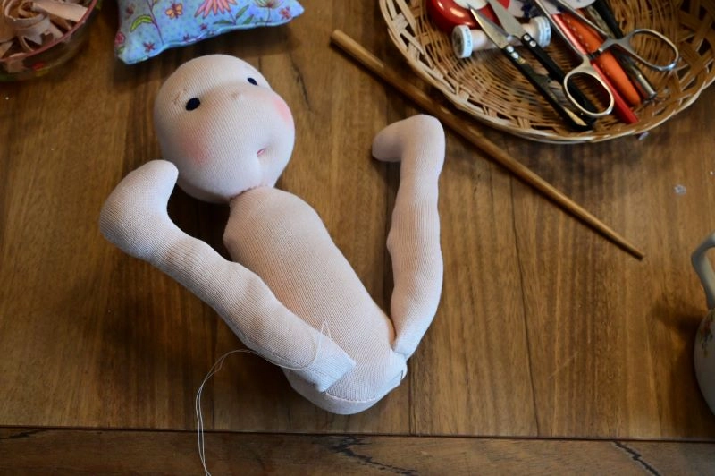 Am zweiten Kurstag besticken wir den Kopf und stopfen die Glieder und den Rumpf der Waldorfpuppe mit Bio-Schurwolle aus. Im Anschluss nähen wir den Puppenkörper von Hand zusammenzunähen. Wenn Zeit nach dem Abendessen bleibt, kann in geselliger Runde Puppenkleidung angefertigt werden.