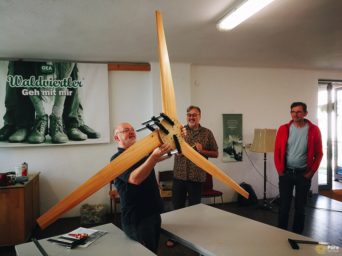 Vom Rotorblatt bis zum Generator – im Workshop baut ihr mit Jonathans Hilfe ein Kleinwindrad mit 2,2m Durchmesser nach dem Piggott Windrad-Konzept. Sämtliche Komponenten des Windrades werden dabei im Workshop selbst gefertigt. Ihr lernt dabei alles was ihr braucht, um später selbst ein eigenes Windrad zu bauen. Außerdem erhaltet ihr einen praktischen Zugang zu vielen Arbeitstechniken aus Holzbearbeitung, Maschinenbau und Elektrotechnik. Das gebaute Windrad wird am Ende des Workshops getestet.