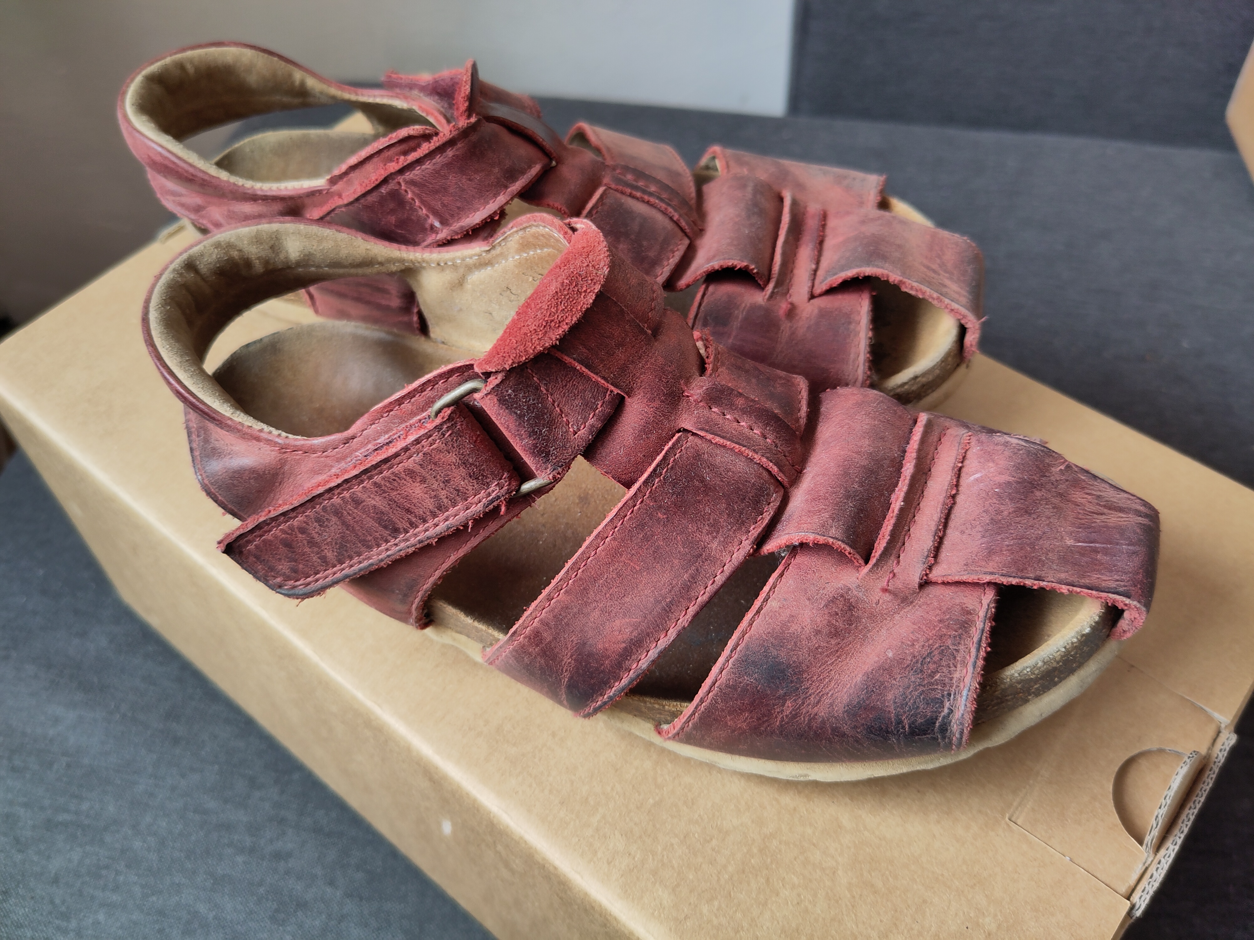 GGG Sandalen, Gr. 34, in der Farbe "Berry". Wie zu sehen sehr gerne getragen und entsprechend abgewetzt, aber unverwuestlich. Abholung in Leonding/Linz oder Wien bzw. Versand.