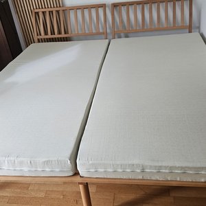 2 x 100 cm breite Matratzen mit einer Auflage Matratzenhärte: weich Auflage 4* (Rosshaar/Schurrwolle) Wurde fast immer mit einem zusätzlichen Baumwollauflage als Schutz verwendet. Gekauft …