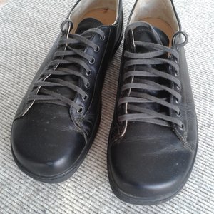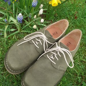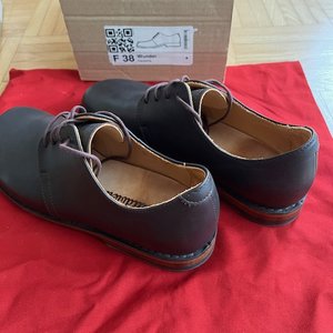 Lediglich 4 oder 5 mal zum Spazierengehen getragen. Vor dem ersten Tragen mit Tapir-Lederfett eingecremt. Keine chemische Schuhdesinfektion o.ä.