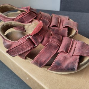 GGG Sandalen, Gr. 34, in der Farbe "Berry". Wie zu sehen sehr gerne getragen und entsprechend abgewetzt, aber unverwuestlich. Abholung in Leonding/Linz oder Wien bzw. Versand.